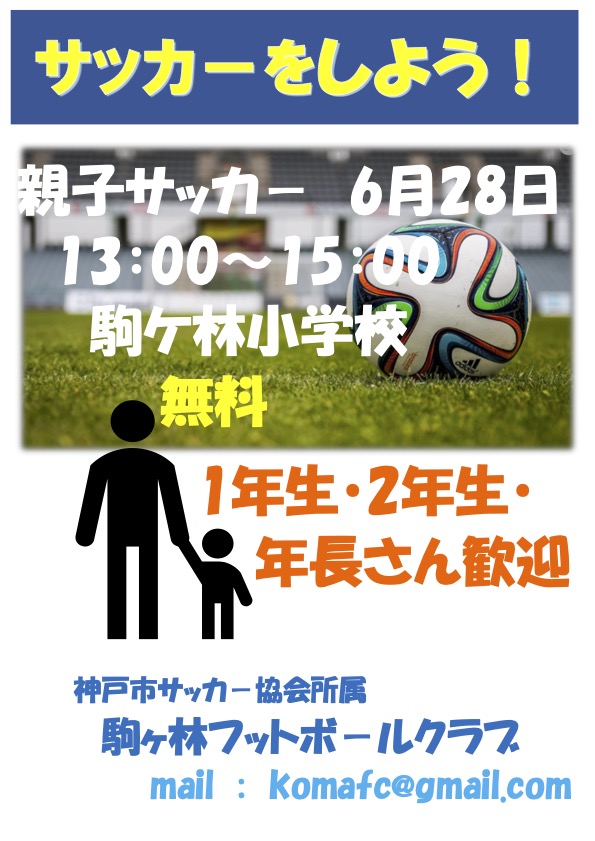 2025年6月28日に駒ヶ林小学校で親子サッカーを開催します
