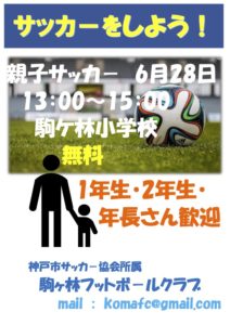 2025年6月28日に駒ヶ林小学校で親子サッカーを開催します